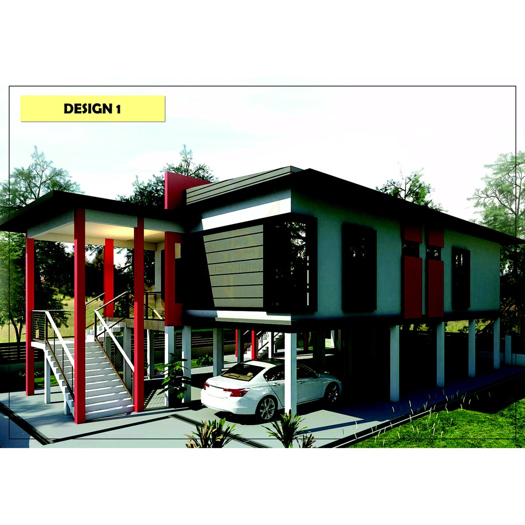 Pelan Rumah Lengkap Pelan Rumah Dan 3d Perspektif View Rumah Kampung Bertiang Tinggi Plan Lengkap Siap Untuk Bina Shopee Malaysia